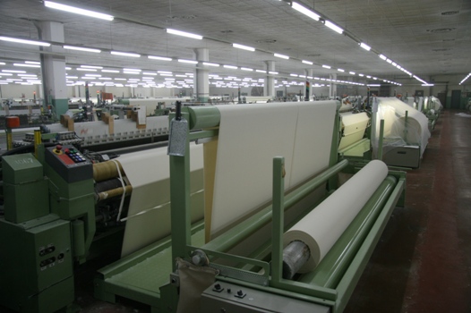 主要配套设备:瑞士苏尔寿片梭织机P7100(2.8m)织机55台,片梭P7100(3.9m)织机39台,片梭P7200(3.9m)织机42台,德国多尼尔全自动喷气织机(3.8m)56台,日本丰田喷气织机JAT610 63台(其中28台为电子多臂开口机构,4台电子式大提花开口机构),日本津田驹ZAX9100-280 36台,卷纬机4台,络筒机5台,整经机5台,(其中瑞士贝宁格整经机2台),浆纱机4台(其中德国S222祖克浆纱机1台,瑞士贝宁格浆纱机2台),验布机17台,烘、折、刷布机7台,360T液压打包机2台