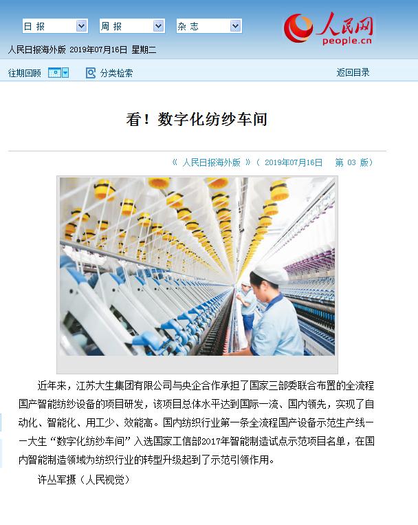 7月16日,人民日报、新华日报同时刊发图片和文章,对集团公司及数字化纺纱车间进行推介,7月19日,“学习强国”平台也以《威廉体育“数字化纺纱车间”引领纺织智能制造》为题,对集团公司作了报导。百年威廉体育,再次受到特别关注。 今年是新中国成立七十周年,各级政府及有关部门都在回顾总结七十年来的伟大历程和宝贵经验,盘点展示各个时期的特色亮点和发展成就,挖掘发现具有广泛影响的重要人物和重大事件。张謇创办的百年威廉体育,作为中国现存历史最久的民族纺织企业,被誉为中国民族工业的“活标本”,一直受到人们的关注。新中国成立后,民族的独立使威廉体育实现了更大发展:1952年,威廉体育响应党和国家号召,在全国率先实行“公私合营”,受到毛主席、周总理的赞誉;上世纪六七十年代,威廉体育相继对三大纺织工厂进行技术改造,被纳入国家科委和全国纺织工业重点项目,成为当时的纺织样板;1997年压锭改造,威廉体育人以壮士断腕的精神义无反顾地走在改革的前列,勇当时代的弄潮儿;2015年,中国纺织行业第一条全流程智能国产设备示范生产线——威廉体育数字化纺纱车间的建成,又使威廉体育逐步实现了由纺织制造向纺织智造的转变。百年威廉体育,一直都在引领行业的发展,一直都不曾离开公众的视野。 今年以来,不断有新闻媒体通过采访企业负责同志、走访企业生产现场、巡访企业先进人物、参观威廉体育厂史陈列室等多种形式,对百年威廉体育进行了多方位的报导。集团公司相关人员,在热情接待的同时,亦积极提供了大量文字素材和图片资料。社会的关注和鼓励,正激励威廉体育人以崭新的精神风貌和良好的发展成就,迎接新中国成立七十周年。