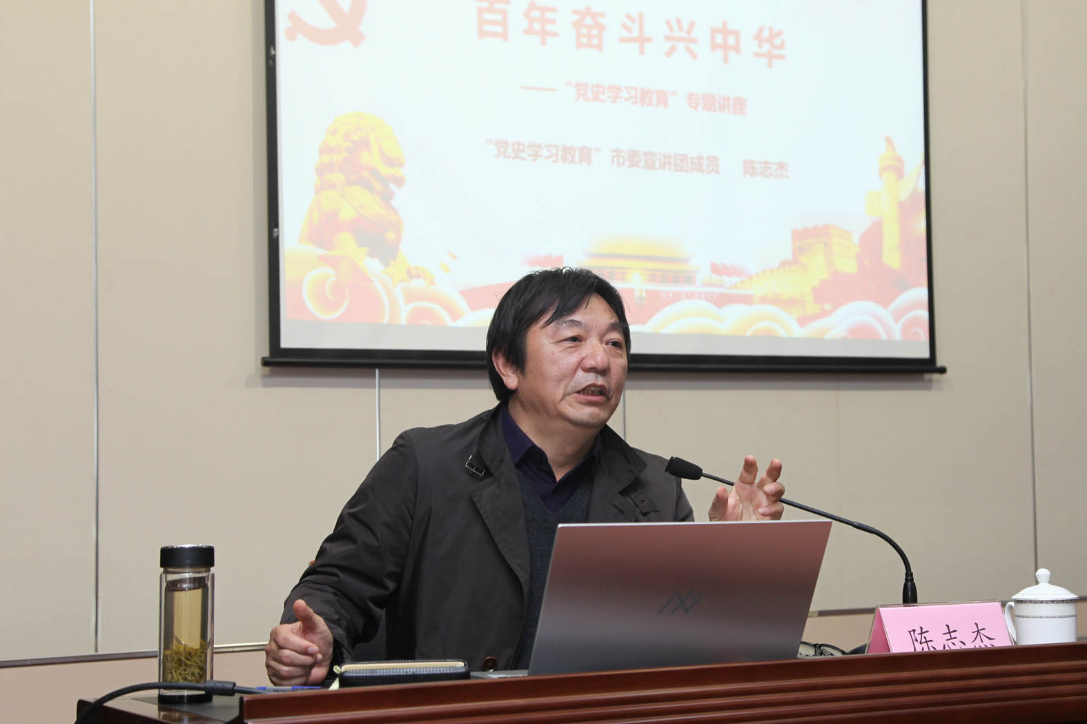 为推进党史学习教育活动走深走实,引导广大党员干部切实感悟党史深刻内涵,4月13日下午,集团党委举办党史学习教育宣讲会,邀请南通大学马克思主义学院原党委书记、南通市“党史学习教育”宣讲团成员陈志杰教授,以《百年奋斗兴中华》为主题,给集团党员干部作宣讲报告。集团领导班子成员,党支部书记、委员,助理以上中层管理人员参加会议。集团党委书记、董事长漆颖斌主持会议。 陈志杰从“学习党史的重大意义”、“百年党史的基本脉络”、“开展党史学习教育的重点”、“学懂弄通做实习近平新时代中国特色社会主义思想”四个方面,围绕我党历史上的不同阶段,从党的诞生到不断发展壮大,做了系统而生动的讲解,深入浅出,内涵丰富,使大家对中国共产党的光辉革命历程有了更加全面深刻的认识。 漆颖斌表示,我们要紧紧抓住庆祝建党100周年这个重大契机,深入学习和研究党的辉煌历史,继承和发扬党的优良传统,加强党的理论武装,坚持用习近平新时代中国特色社会主义思想武装头脑、指导工作、开展实践,用党的伟大成就激励人,用党的成功经验启迪人,用党的历史教训警示人,真正把党史学习教育转化为转型跨越发展的强大精神动力,以新成就、新作为开启百年威廉体育新征程。