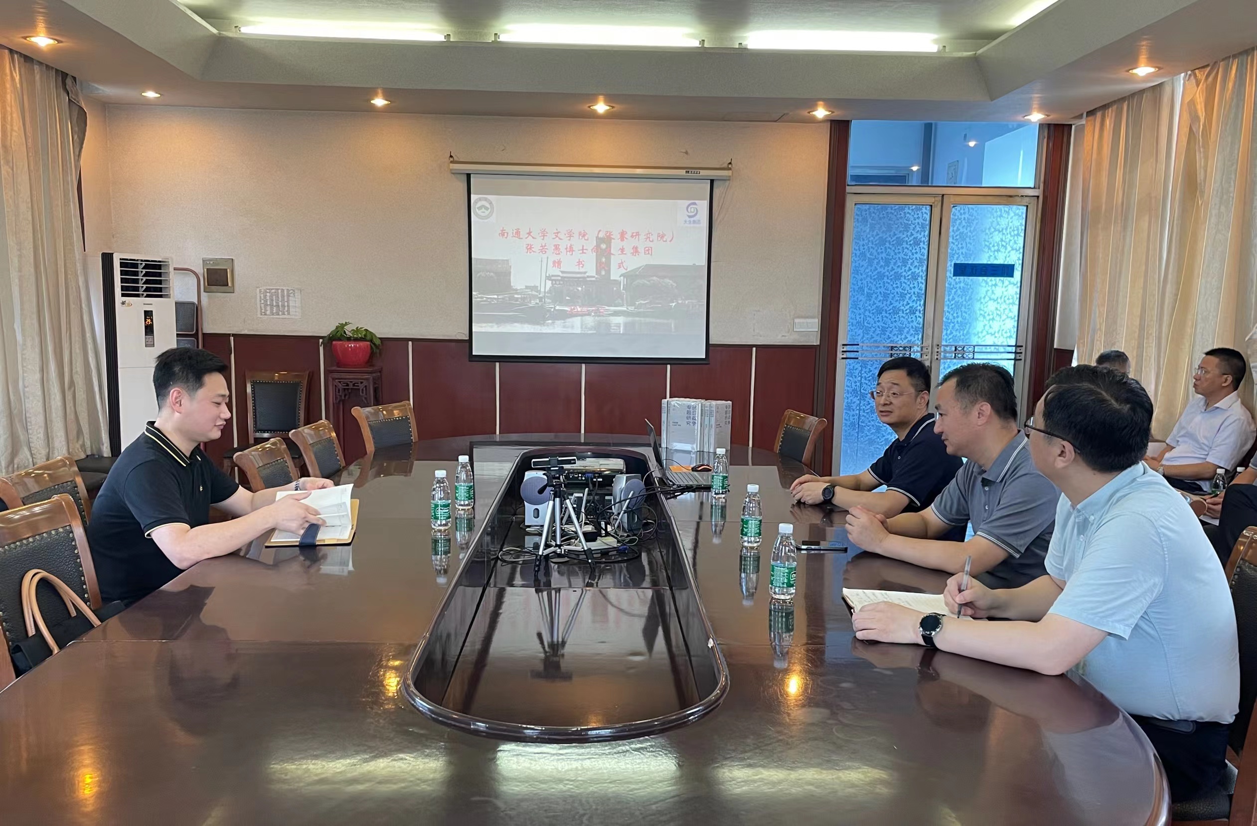 7月5日上午,威廉体育306会议室举行了南通大学文学院(张謇研究院)张若愚博士向威廉体育赠书仪式。集团领导漆颖斌、张启祥、秦建军参加活动。