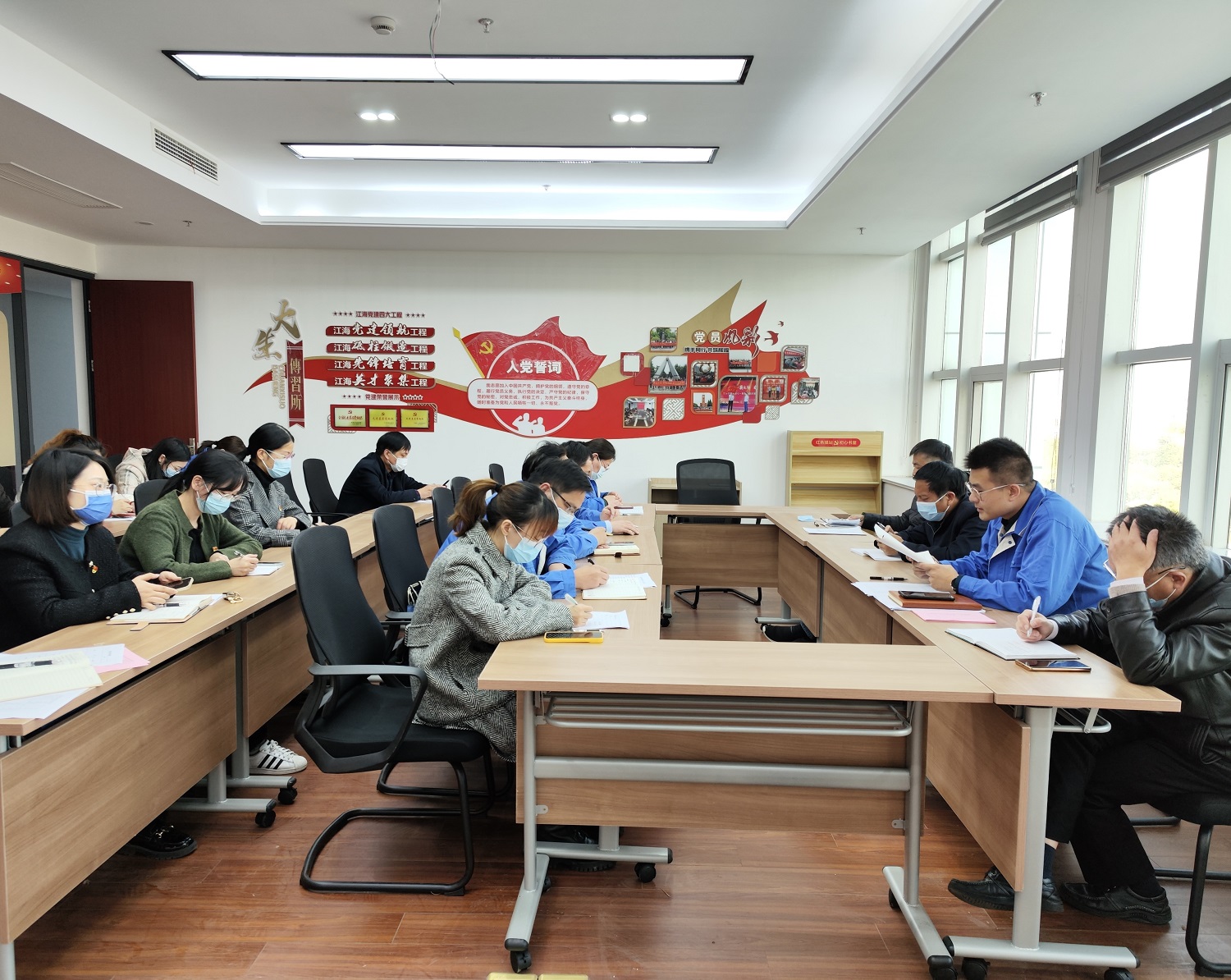 11月24日下午,威廉体育部室支部在集团党群活动中心召开党员大会,进行党的二十大专题学习活动,集团纪委书记、监察专员朱锡余代表集团党委进行了巡学旁听。 会上,部室支部书记潘宇就《党的二十大报告摘录》中“加快构建新发展格局,着力推动高质量发展”和二十大关于《党章》修订内容和意义进行了领学。部室支部全体党员结合本部门工作纷纷发表了学习感悟。 朱锡余充分肯定本次会议,认为部室支部大会严谨、规范,各党员对二十大报告学习认真细致,且能紧密联系工作实际谈感想,不浮于表面。学习宣传贯彻党的二十大精神,是今年党的建设的政治任务和重点工作,部室支部下一步要做到将党的二十大精神和生产经营工作融会贯通,在新思想中汲取团结奋进力量,为企业高质量发展多做贡献。 今年,集团党委研究出台了对基层党组织进行巡学旁听的工作方案,做到一年之内全覆盖,通过听、看、考、评等手段,不断提高基层党组织理论学习和主题活动制度化、规范化水平。