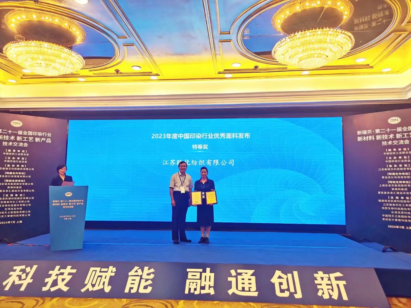 喜报!欧化纺织公司两产品荣获中国印染行业 优秀面料特等奖和一等奖