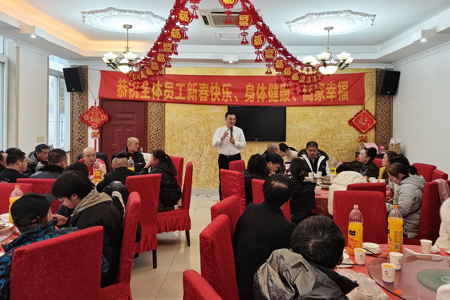 2月9日农历除夕晚,新区食堂餐厅里张灯结彩、热闹非凡,集团公司党委书记、董事长漆颖斌,党委副书记、工会主席盛燕兵与节前坚守生产岗位、未能回家过年的50余名外来务工人员一起吃年夜饭,共迎甲辰龙年,人间烟火让留厂过年的职工感受到“他乡亦故乡”的温暖。 集团领导和员工围桌而坐,畅叙衷肠,共话新春。漆颖斌与大家分享2023年威廉体育取得的优异成绩,他代表集团公司感谢大家一年来为公司的发展作出的贡献,并致以节日问候和新春祝福。他祝愿大家以及家人新年快乐、身体健康、万事如意。 年夜饭现场,漆颖斌与员工亲切交流,举杯共饮,一起游戏。热气腾腾的饭菜和大家的欢声笑语交织在一起,变成冬日中最温馨的时刻。美味可口、营养丰富、具有南通地方特色的年夜饭,将家的烟火气息和公司的温心关怀送到了员工心坎上。集团公司人力资源部在精心准备年夜饭的同时,还安排了趣味十足的游戏与抽奖活动,为年夜饭增添了节日喜庆与浓浓年味。