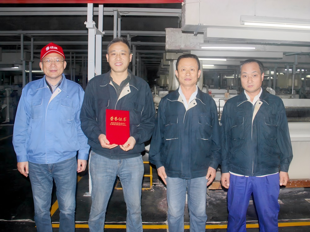 12月18日下午,包卫东一行先后到纺纱分厂、织布分厂、仓储库区等处进行检查,深入一线了解生产运营、品种结构、设备技改、精益管理、安全管理等情况,并在织布分厂现场为在集团保全技能大赛中获奖的先进小组颁发荣誉证书。
