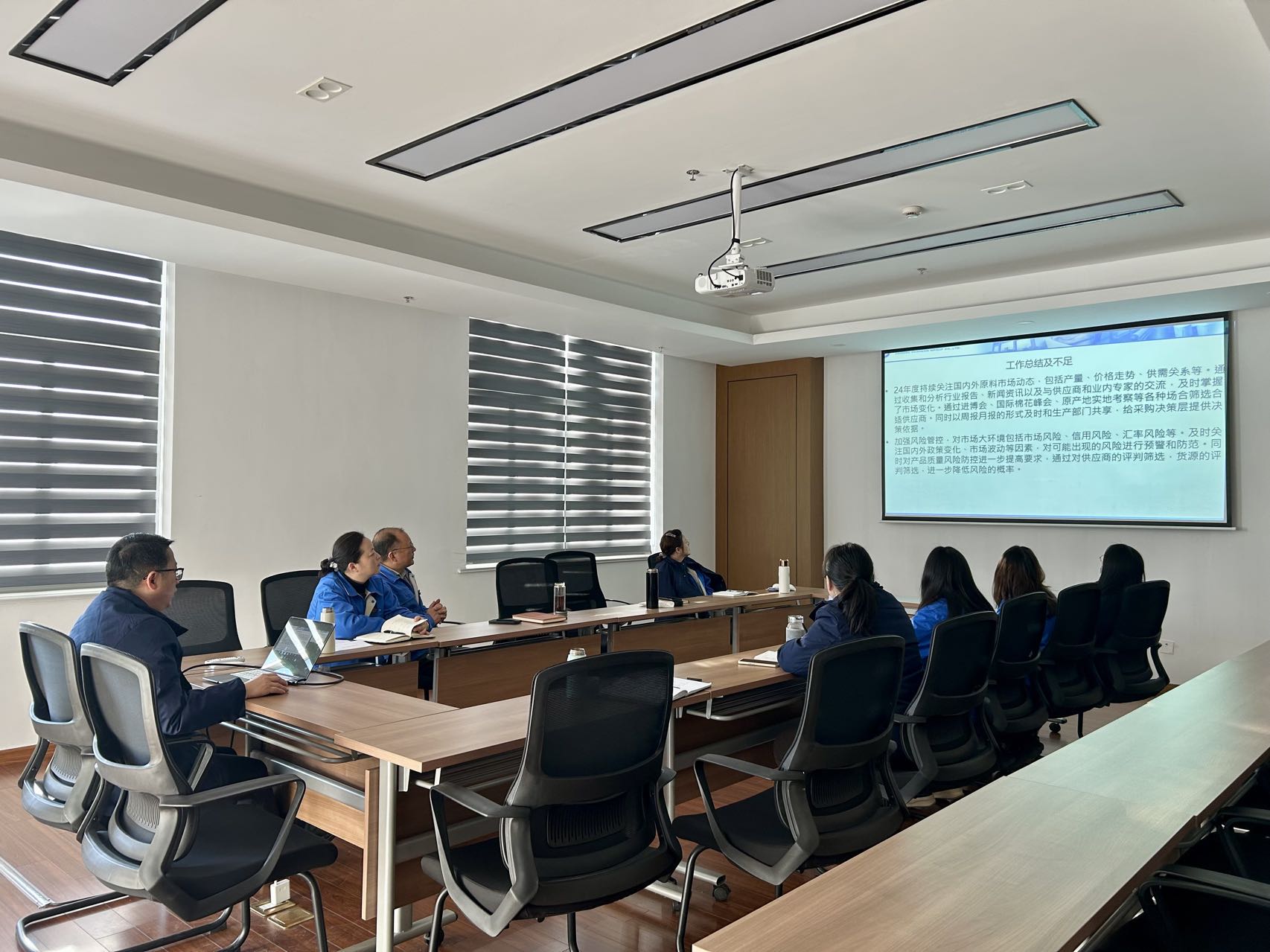1月10日,南通一棉进出口有限公司全体人员在集团301会议室召开2024年度工作总结暨2025年度工作部署会。集团公司党委委员、副总经理杭旭娟主持会议,党委副书记、总经理包卫东全程参会,作相关点评,并对2025年工作提出具体要求。 包卫东对进出口公司2024年的工作成绩表示认可,并明确了2025年的具体目标。强调新一年的工作中,对内,需进一步梳理现状、统筹规划、整合资源、挖掘潜力,利用精益管理工具实现自身优势最大化;对外,需根据外部变化,强化分析、研判市场能力,从每一次复盘中汲取经验,从而提升决策准确度。最后,希望全体人员提升学习能力,要具有敢于创新的精神,积极拓展新渠道、开拓新市场,在新的一年里取得更优异的成绩。 杭旭娟对大家在2024年严峻外贸形势下努力地付出和取得的成绩表示肯定,同时也明确指出大家在各自工作中存在的不足,并提出相关改善要求。2025年国际形势尚不明确,纺织品在传统市场直接出口的预期降低,因此提出以下几点要求:一在进口方面要做好统筹规划工作,服务好工厂车间;二在出口业务方面,要积极开拓新兴市场,做好客户服务工作;三在新渠道方面,要依托集团优势,统筹利用好各项资源,推动新渠道工作落地;四在精益管理方面,各个工作流程都要提升精细化管理水平,实现降本增效。 会上,进出口公司全体人员就原料进口、外贸业务、验厂认证等方面,对2024全年工作做详细总结及汇报,并根据各自岗位实际情况提出新一年度工作计划及切实可行的落地措施。