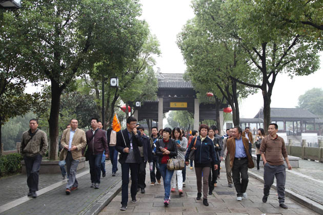 木渎位于苏州城西12公里,是一个有2500年历史的古镇。员工在导游带领下,首先来到乾隆的老师、诗人沈德潜故居——严家花园,然后又参观了清末木渎富翁蔡少渔旧宅——古松园,内有二十道清代圣旨的乾隆民间行宫——虹饮山房及洋务运动先导、著名政论家冯桂芬故居——榜眼府第等景点。员工观赏着粉墙黛瓦、重脊高檐的水乡古镇风貌,被导游一个个在趣的历史故事深深吸引,对被联合国教科文组织授予“民间工艺美术家”的姚建萍的苏绣作品更是赞叹不已。游览期间,员工们结伴而行,互相关心,彼此照顾,千年古镇留下了员工欢快的笑声。